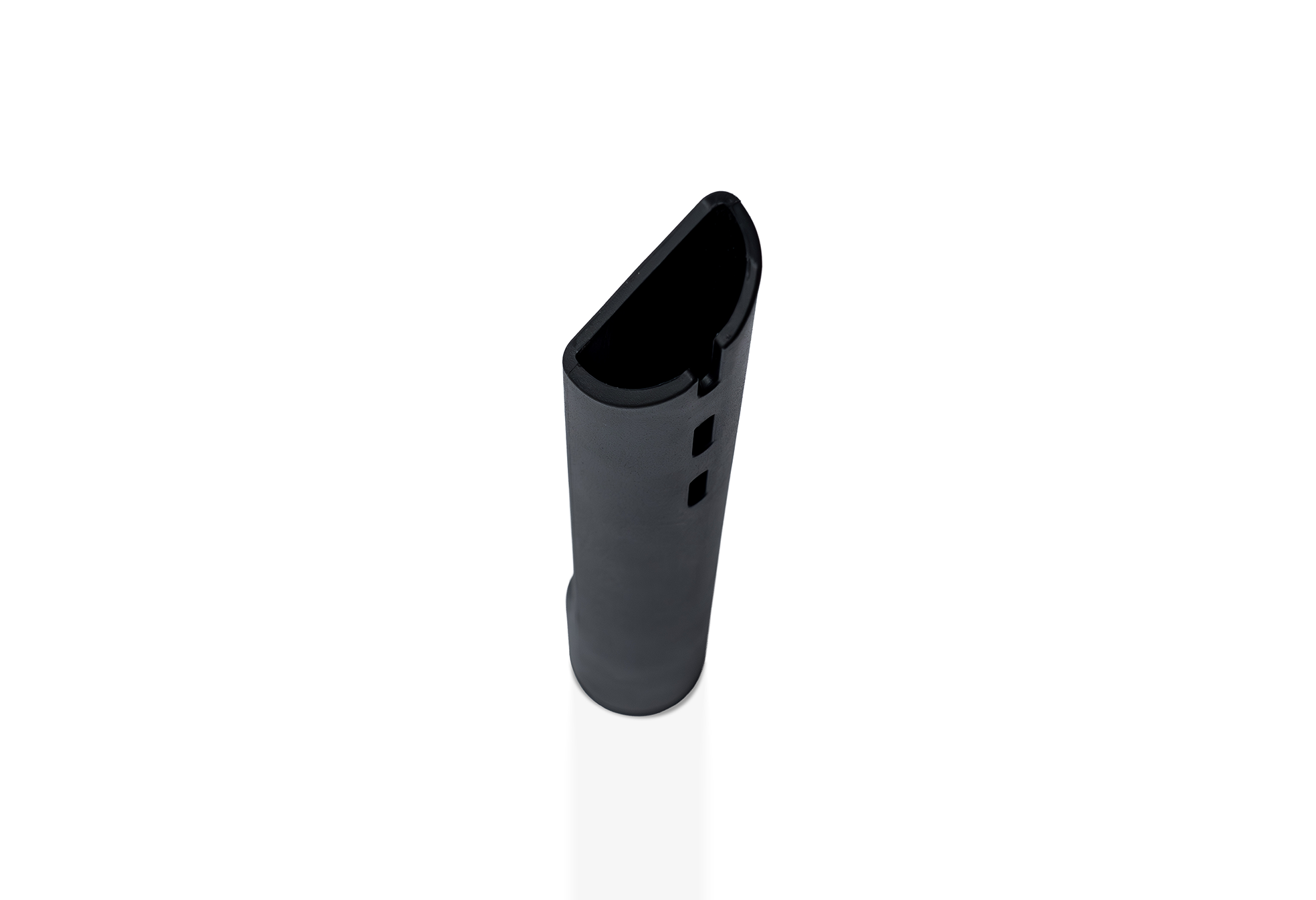Its shape as a circular segment with one curved and one straight edge enables precise cleaning. Elongated side openings along the curved edge provide additional suction for dirt located to the side. The beveled tip makes it easier to reach into tight spaces and increases suction power at the point of contact.