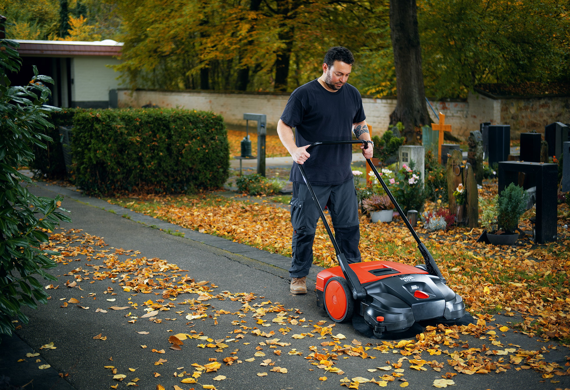 The special advantage of haaga and starmix: our battery-powered sweepers can also be operated manually at any time – which is practical when the battery is empty and the work still needs to be completed.