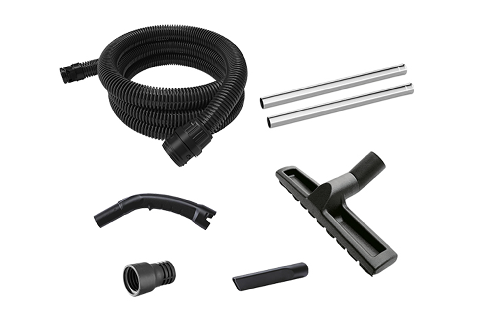 | Zubehör | 1x Saugschlauch 2,5 m, ergonomisches Griffrohr, Kunststoff, Art. Nr. 454771 und 454849; 2x Saugrohr Stahl verchromt (je 50,5 cm) Art.Nr. 454825; 1x Anschlussmuffe Art.Nr. 454818; 1x Bodendüse mit Borsten- und Gummileisten; 1x Fugendüse 22,5; Nachkauf: Fugendüse 22, Art. Nr. 417011; Bodendüse 26, Art. Nr. 434773 |